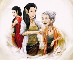 "Kulonuwun...!salam Bawang putih. Wong wadon tua mbukak lawang.
